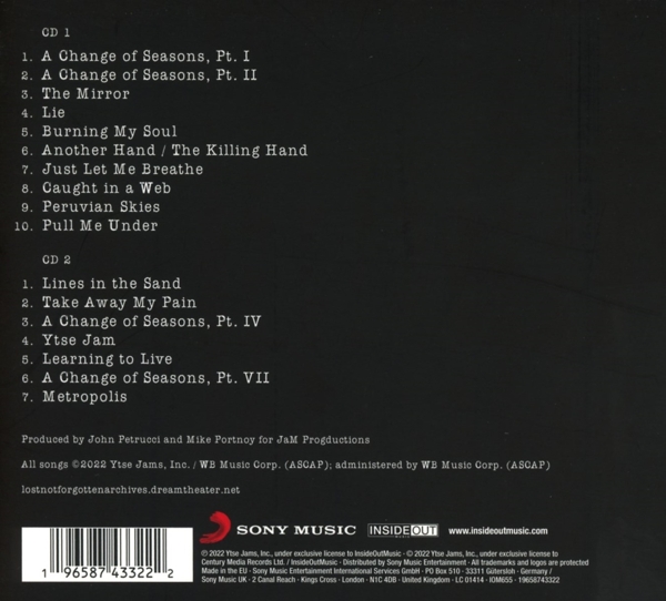 Disc 02 01. "Lines in the Sand - Live in New Jersey, 1996" 02. "Take Away My Pain - Live in New Jersey, 1996" 03. "A Change of Seasons, Pt. IV - Live in New Jersey, 1996" 04. "Ytse Jam - Live in New Jersey, 1996" 05. "Learning to Live - Live in New Jersey, 1996" 06. "A Change of Season, Pt. VII - Live in New Jersey, 1996" 07. "Metropolis - Live in New Jersey, 1996"